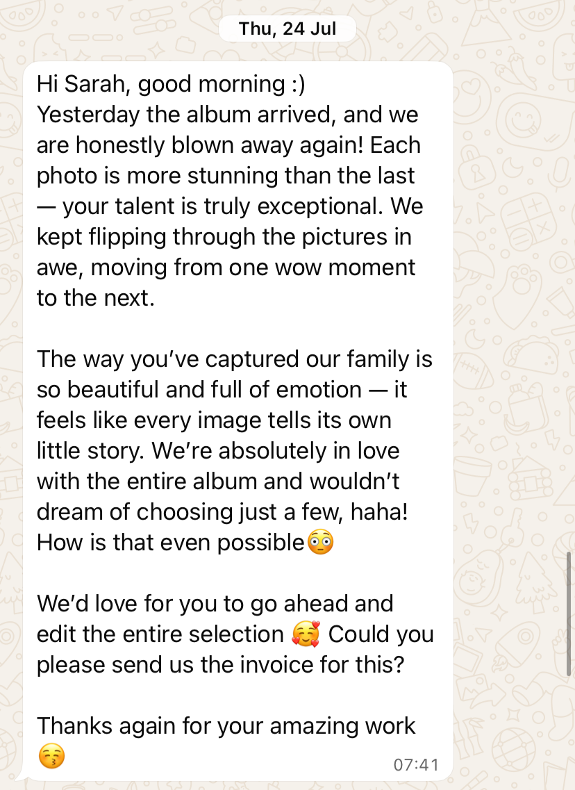 Una sessió de família tracta de narrar la vostra història — capturant els riures, l’amor i els moments quotidians que fan que la vostra família sigui única. Em centro a crear imatges naturals i autèntiques que reflecteixin les connexions entre vosaltres i els vostres éssers estimats.